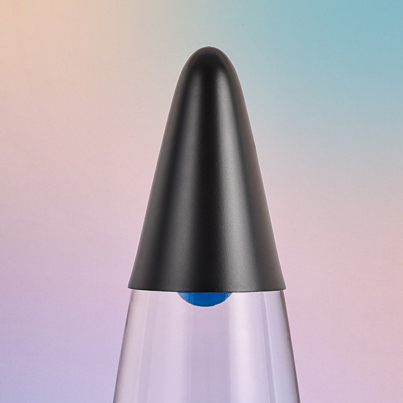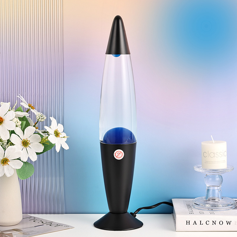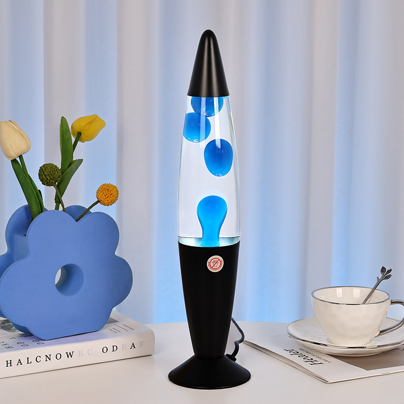 16 düymlük Qara kölgəli mavi lava lampası hündürlükdə elektrik rozetkasıdır. bənövşəyi Bənövşəyi alüminium qabıq, bənövşəyi mum, yandıqda saf bənövşəyi mum lampası.