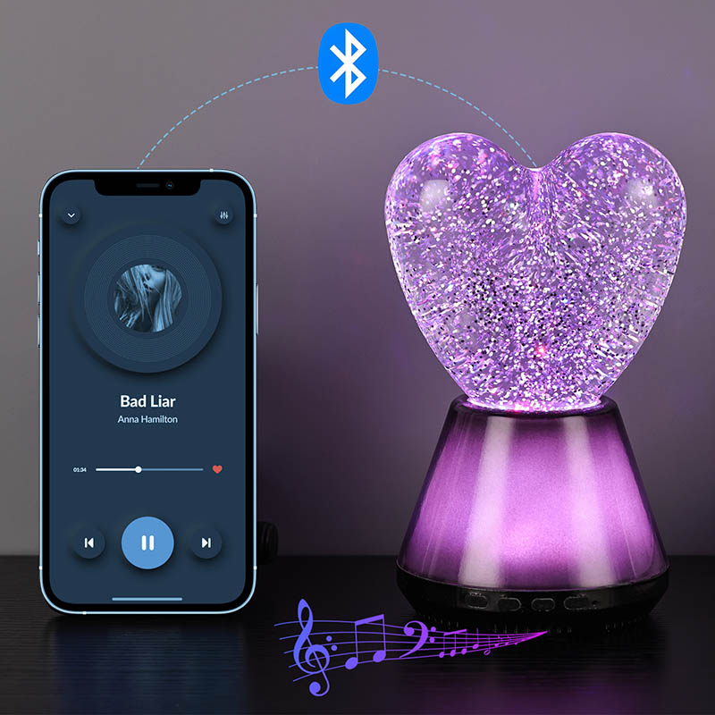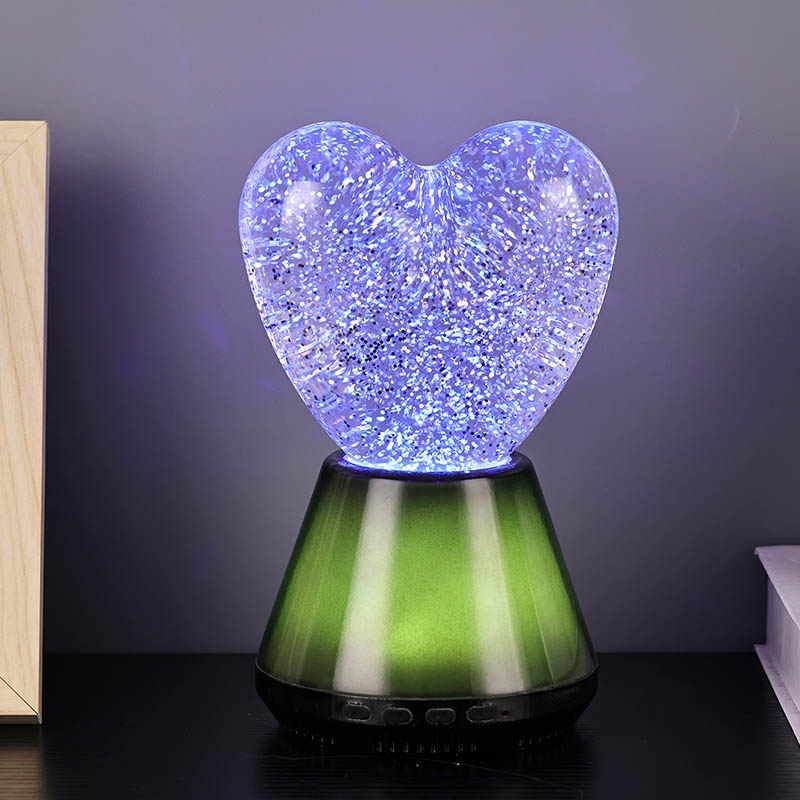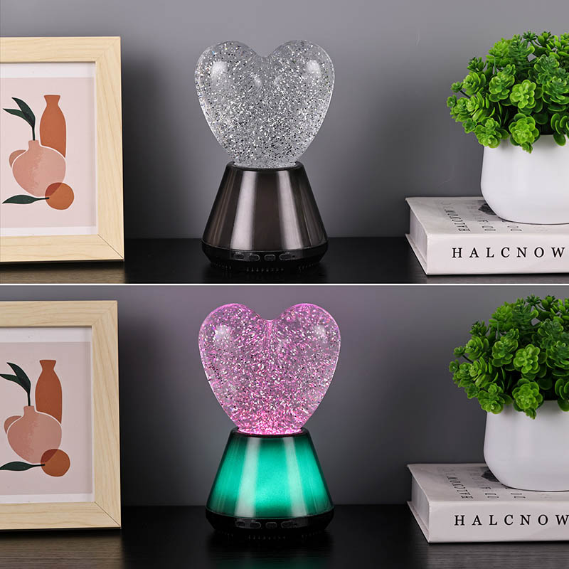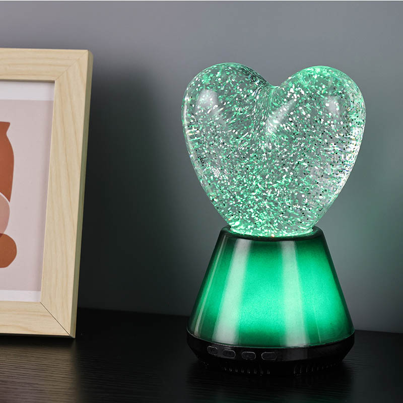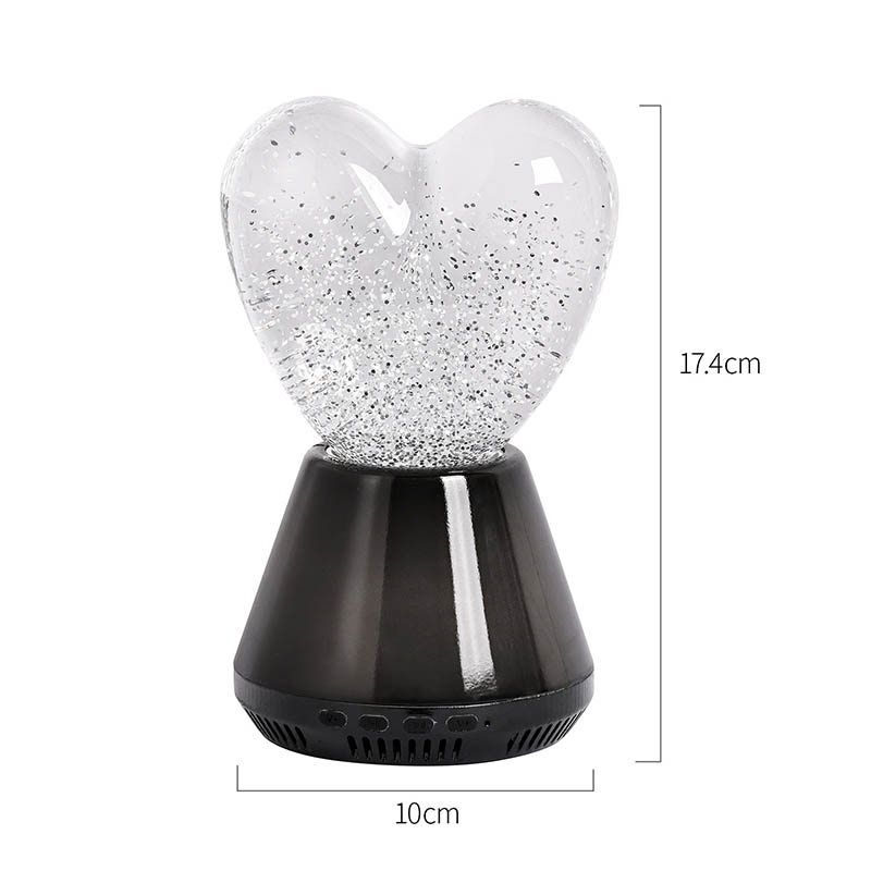 Bluetooth ilə idarə olunan parlaq ürək gecə işığının daxili hissəsi sirli bir maye ilə doldurulur, içərisində saysız-hesabsız parıldayan parıldamaqlar üzür. Lampa yandırıldıqda, maye yavaş-yavaş ürək formalı şüşə topun içərisinə axacaq və yuxuya bənzər bir effekt yaradacaqdır. Bu sequins səpələnmiş ulduzlara bənzəyir, mayenin içində yumşaq üzən, insanlara ulduzlu səmada olmaq hissi verir. İstər gündüz, istərsə də gecə, ürək kölgəsi ilə uşaqlara sürpriz və sevinc gətirə bilər, onlara xəyalpərəst işıqlandırmada təxəyyüllərini üzə çıxarmağa imkan verir.