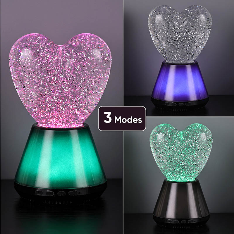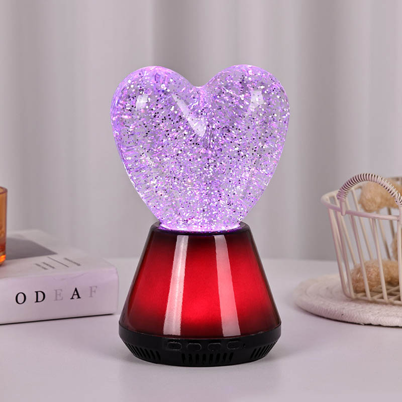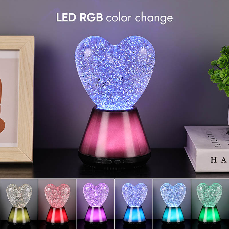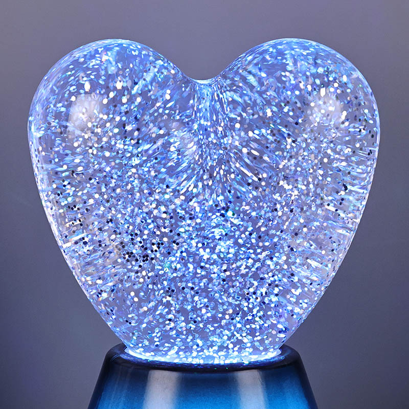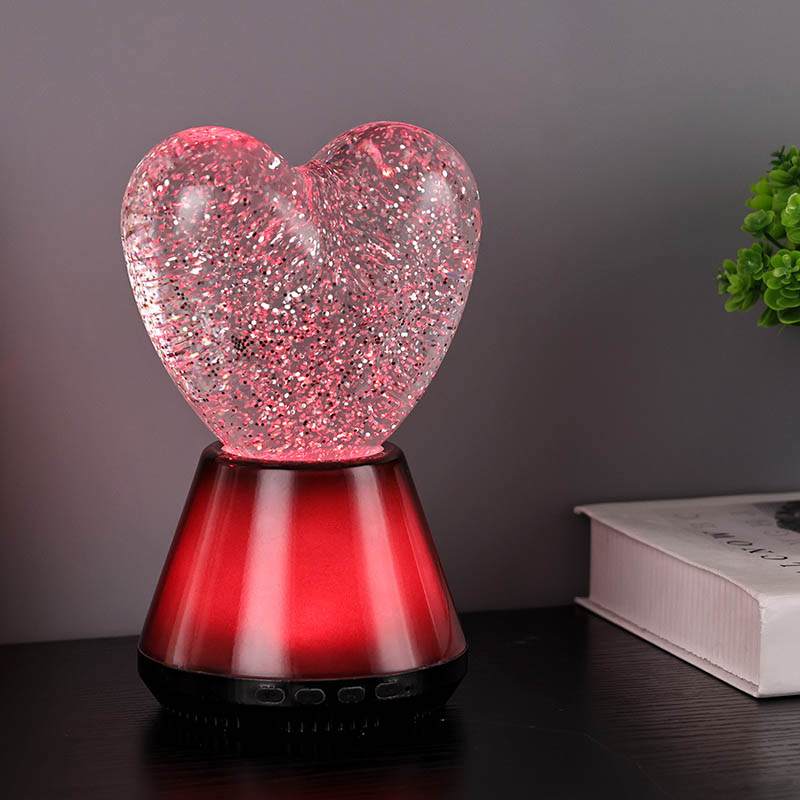 Bluetooth ilə idarə olunan parlaq ürək gecə işığının daxili hissəsi sirli bir maye ilə doldurulur, içərisində saysız-hesabsız parıldayan parıldamaqlar üzür. Lampa yandırıldıqda, maye yavaş-yavaş ürək formalı şüşə topun içərisinə axacaq və yuxuya bənzər bir effekt yaradacaqdır. Bu sequins səpələnmiş ulduzlara bənzəyir, mayenin içində yumşaq üzən, insanlara ulduzlu səmada olmaq hissi verir. İstər gündüz, istərsə də gecə, ürək kölgəsi ilə uşaqlara sürpriz və sevinc gətirə bilər, onlara xəyalpərəst işıqlandırmada təxəyyüllərini üzə çıxarmağa imkan verir.