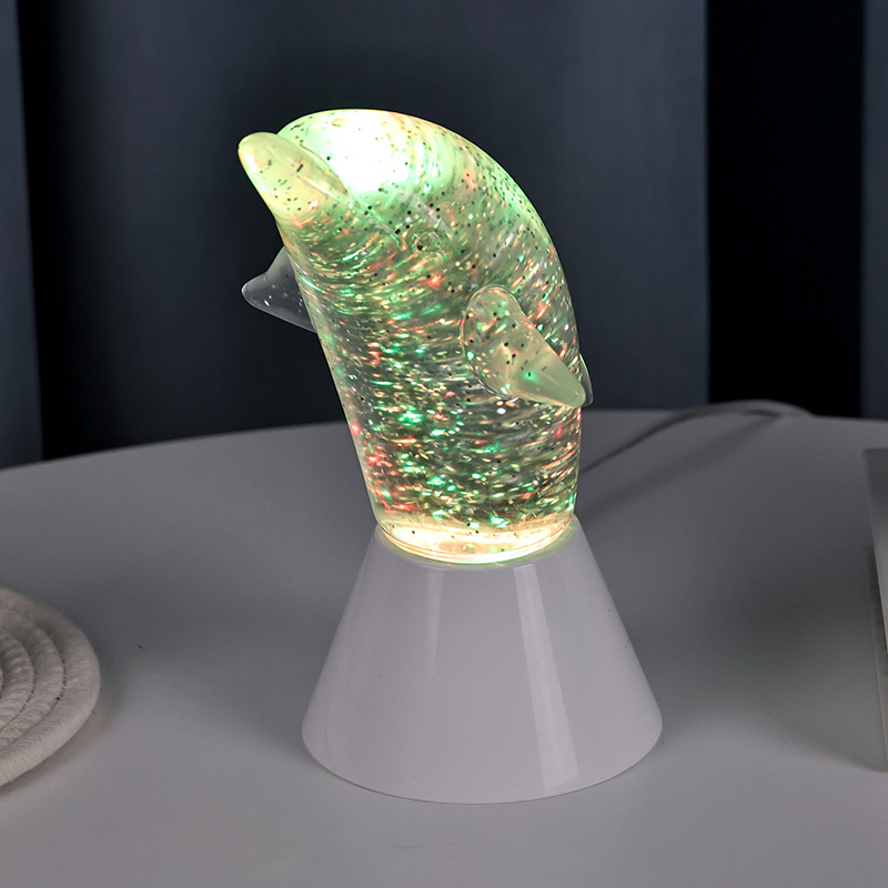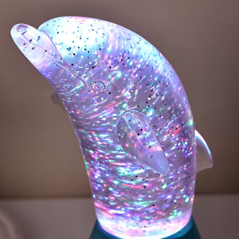 Dolphin Kid Gift Glitter RGB Nigh Light, delfinlərin çevik duruşunu mükəmməl şəkildə bərpa edən hamar xətləri və incə detalları ilə sevimli delfin şəklində dizayn edilmişdir. Şəffaf delfin qabığının içərisində, sequins şəklində Düzensiz hərəkətlər dinc və sirli bir atmosfer yaradaraq rəngləri gözəl şəkildə əks etdirə bilər. Hər dəfə bu lampaya baxdığınız zaman dərin bir okeanda olduğunuzu hiss edirsiniz. Onların arasında təbiətin sonsuz cazibəsini hiss edin, çoxlu rənglər arasında sərbəst keçid etməyə imkan verən qabaqcıl RGB rəng dəyişdirən işıqlandırma texnologiyası ilə təchiz olunub. İstər isti narıncı, istər romantik çəhrayı, istərsə də sakit mavi,