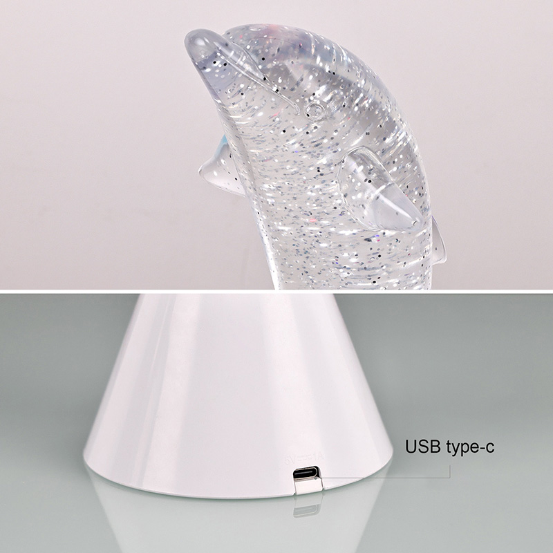 Dolphin Kid RGB Nigh Light daxili batareya dizaynına malikdir, mürəkkəb naqil birləşmələrinə ehtiyacı aradan qaldırır və sizi istənilən vaxt, hər yerdə yumşaq işıqlandırma ilə təmin edir. Yataq otağına, iş otağına və ya uşaq otağına yerləşdirilməsindən asılı olmayaraq, müxtəlif səhnə ehtiyaclarınızı ödəmək üçün asanlıqla köçürülə bilər.