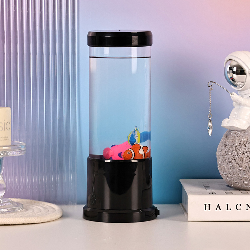 Möhtəşəm LED Balıq Lampasını təqdim edirik – sualtı dünyasının sehrini evinizə gətirən müasir dizayn və su cazibəsinin heyrətamiz qarışığı. Parlaq qara xarici görünüşü, zərif silindrik forması və cəlbedici daxili hərəkəti ilə bu dekorativ lampa sadəcə işıqlandırmadan daha çox şeydir—
