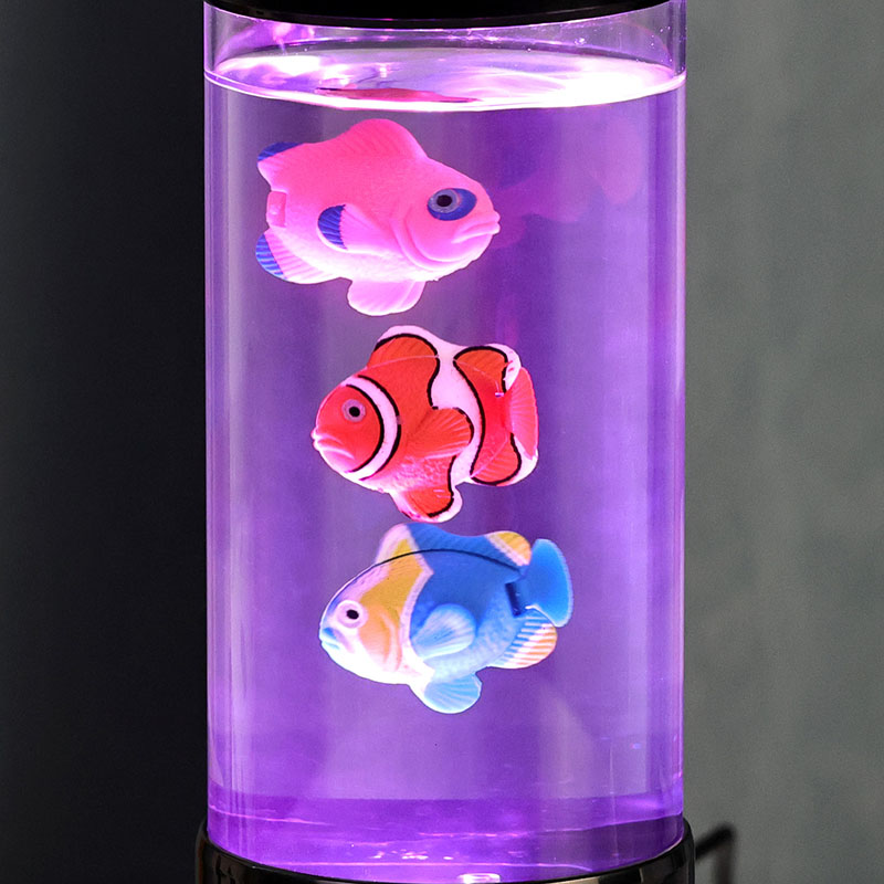 Şəffaf tankın içərisində canlı süni balıqlar dibdən yüksələn zərif qabarcıq axınlarına uyğun olaraq zərif şəkildə yuxarı və aşağı sürüşürlər. Canlı rənglər və real teksturalarla dizayn edilmiş bu gözəl detallı balıqlar daxili hava nasosunun yaratdığı yumşaq cərəyanla daşındıqları üçün təbii şəkildə üzürlər. Hərəkət sakitləşdirici və hipnotikdir, stressi azaltmağa və rahatlamağa kömək edən sakitləşdirici vizual təcrübə yaradır.