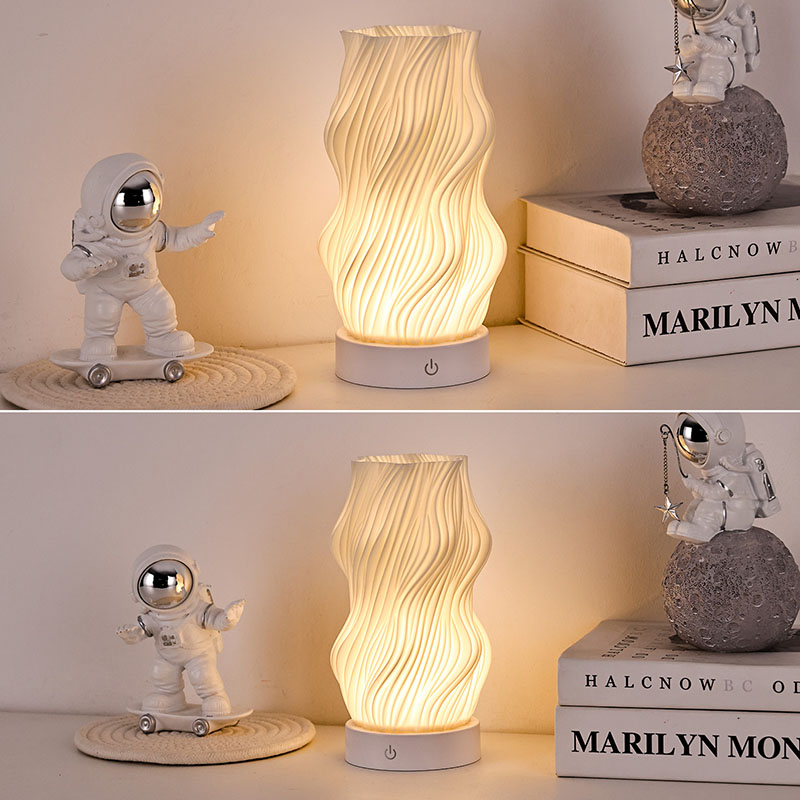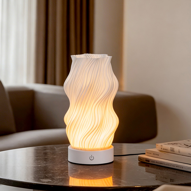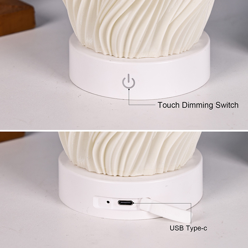 Premium plastikdən hazırlanmış Alov Gecə İşığı Stol Lampasının gövdəsi (yığcam) və yüngüldür. O, nəinki toxunuşda isti hiss edir, həm də təmizləmək və daşımaq asandır. Minimalist dalğavari tekstura dizaynı bədii gözəlliyi praktikliklə birləşdirərək istənilən ev dekorasiyası üslubuna asanlıqla qarışır. Bu, otağınıza zəriflik toxunuşu əlavə edən mükəmməl, yer qənaət edən vurğu parçasıdır.