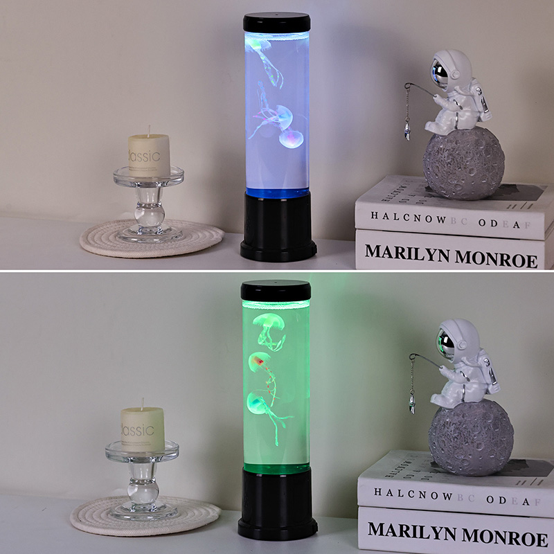 40*30*30.5CMHündür ölçülü LED meduza lampası – Məkanınıza valehedici əlavə Təbiətin zərifliyi və müasir texnologiyanın valehedici qarışığı olan heyrətamiz Meduza LED Lampamız ilə sakit gözəllik dünyasına addımlayın. Sakitləşdirici estetika və innovativ dizaynı qiymətləndirənlər üçün nəzərdə tutulmuş bu unikal stolüstü lampa akvariuma ehtiyac olmadan meduzaların sehrli hərəkətini evinizə, ofisinizə və ya yataq otağınıza gətirir. Parlaq qara korpusu, şəffaf silindrik korpusu və valehedici daxili meduza fiqurları ilə bu USB ilə işləyən, aşağı gərginlikli işıq istirahət, meditasiya və ya ətraf işıqlandırma üçün mükəmməl sakitləşdirici mühit yaradır.