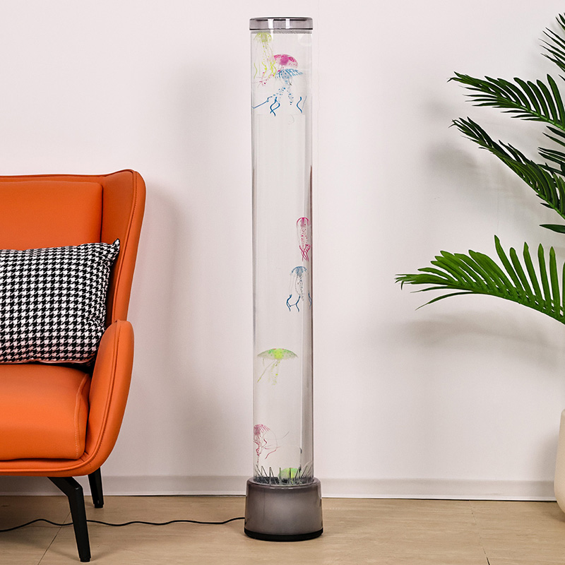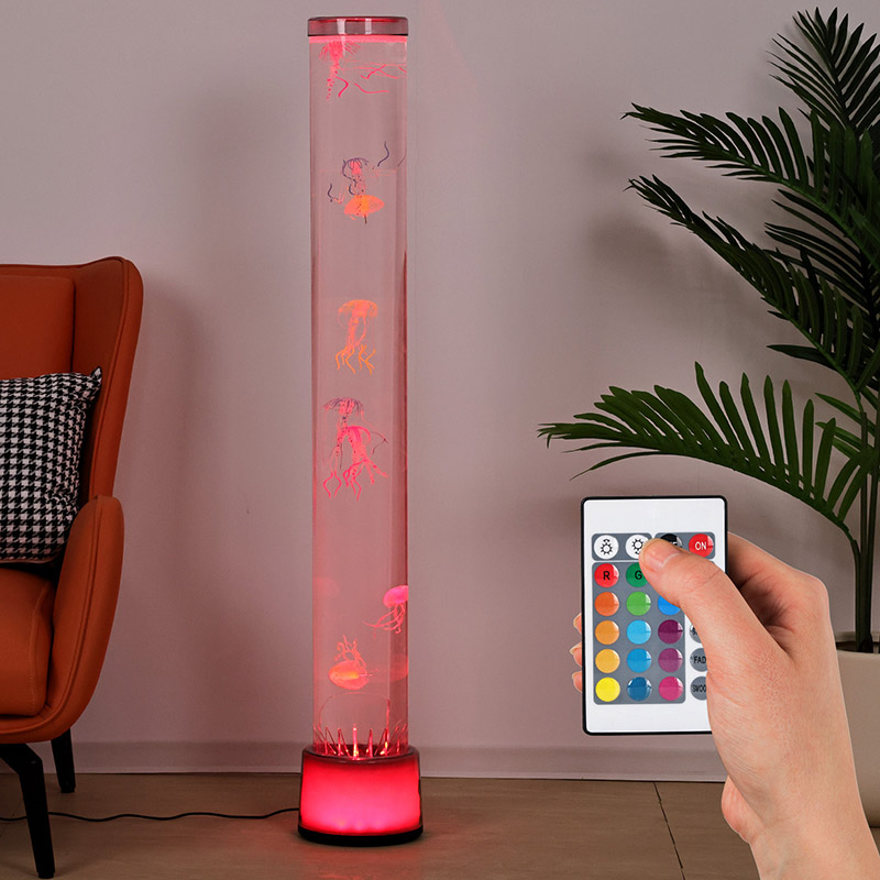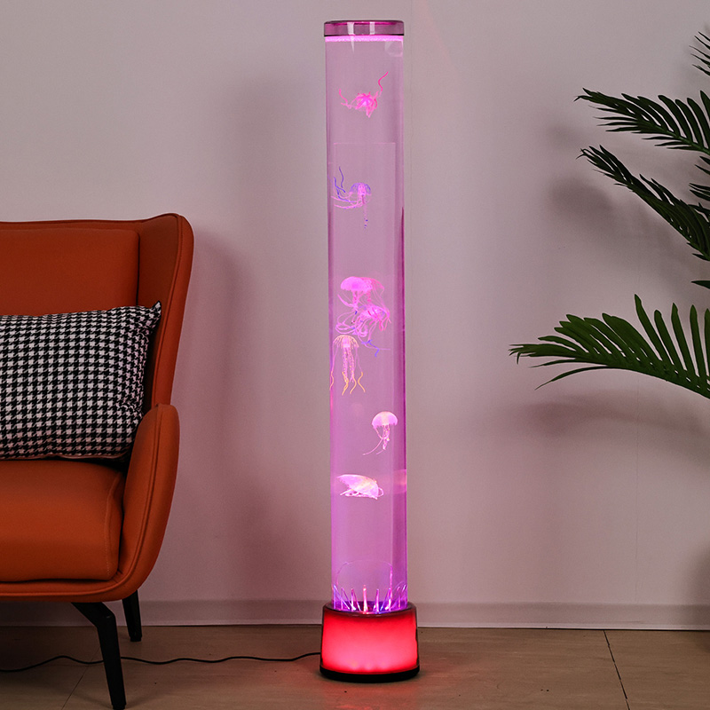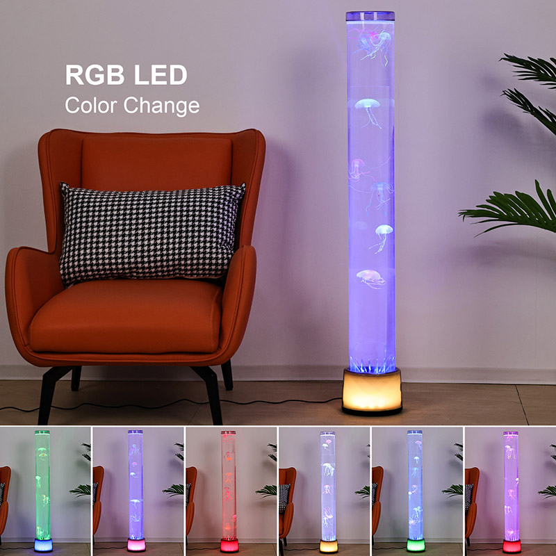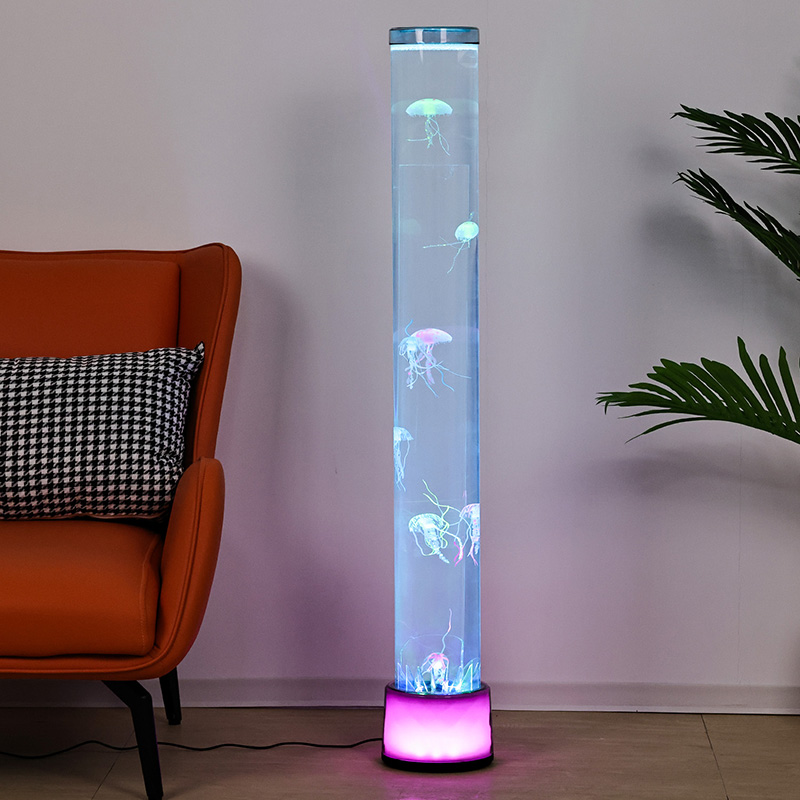 39.5*39.5*115CMBöyük RGB Döşəmə Meduza Lampası müasir texnologiyanı təbii estetika ilə birləşdirən, xəyalpərəst işıq effektləri və canlı meduza dizaynlarını özündə cəmləşdirən kreativ ev dekorasiyası parçasıdır.
