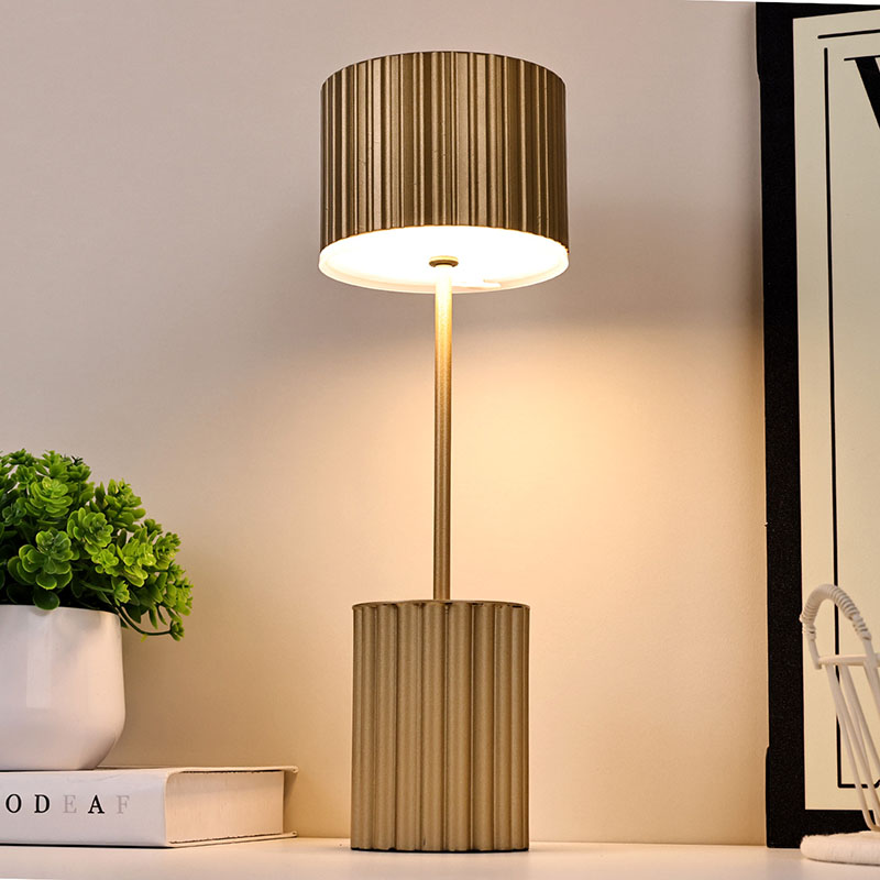 Batareyalı metal kölgəli kiçik stolüstü lampa yüksək keyfiyyətli metal materialdan hazırlanmışdır, səthi incə cilalanmış və işlənmiş, hamar və zərif tekstura və zərif parıltı təqdim edir. İstər qızıl, istər gümüş, istərsə də digər klassik rənglər olsun, onlar müxtəlif daxili bəzək üslubları ilə mükəmməl birləşərək müasir və dəbdəbəli atmosfer yarada bilərlər.