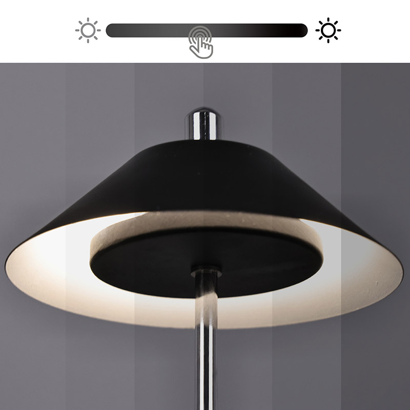Hündürlük Kölgəsini Tənzimləyən Müasir Led Stolüstü Lampasının işığı isti rənglər və 3000K ilə 6500K arasında dəyişən üç səviyyəli işıq intensivliyi ilə abajurun içərisinə kəsilir. Abajurun yuxarı hissəsi antenaya bənzər bir toxunma açarıdır. Baza qeyri-bərabər silindrik metaldan ibarətdir