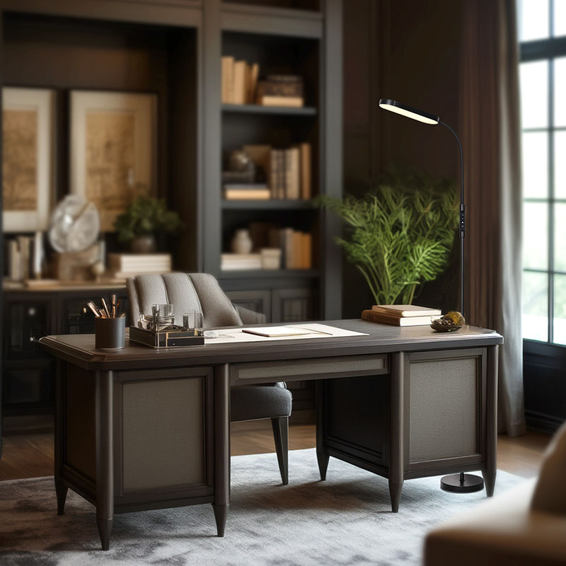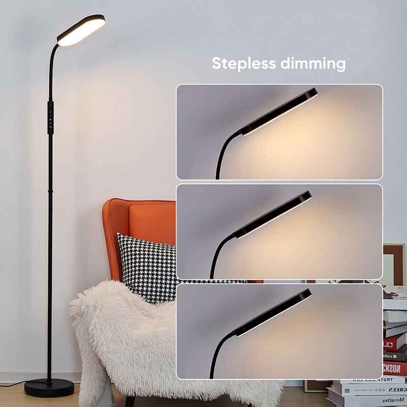 İşıq intensivliyi tənzimlənən bu plastik+metal döşəmə lampası təkcə praktiki işıqlandırma vasitəsi deyil, həm də incə bəzəkdir. Qonaq otağının küncünə yerləşdirilə bilər, bütün məkana müasir və bədii bir atmosfer əlavə edir; Yataq otağında çarpayı masasının yanında yerləşdirilə bilər, hər dinc gecədə sizi müşayiət edir; Sizi geniş və yumşaq iş işığı ilə təmin edərək, iş otağında masanın yanında da yerləşdirilə bilər.