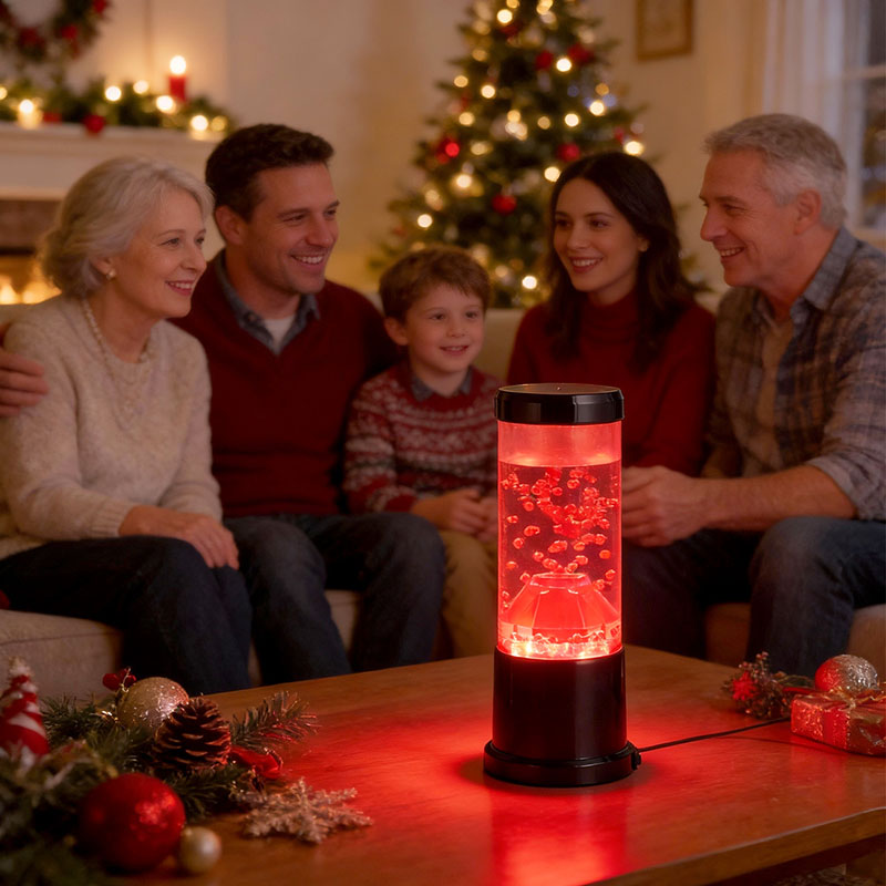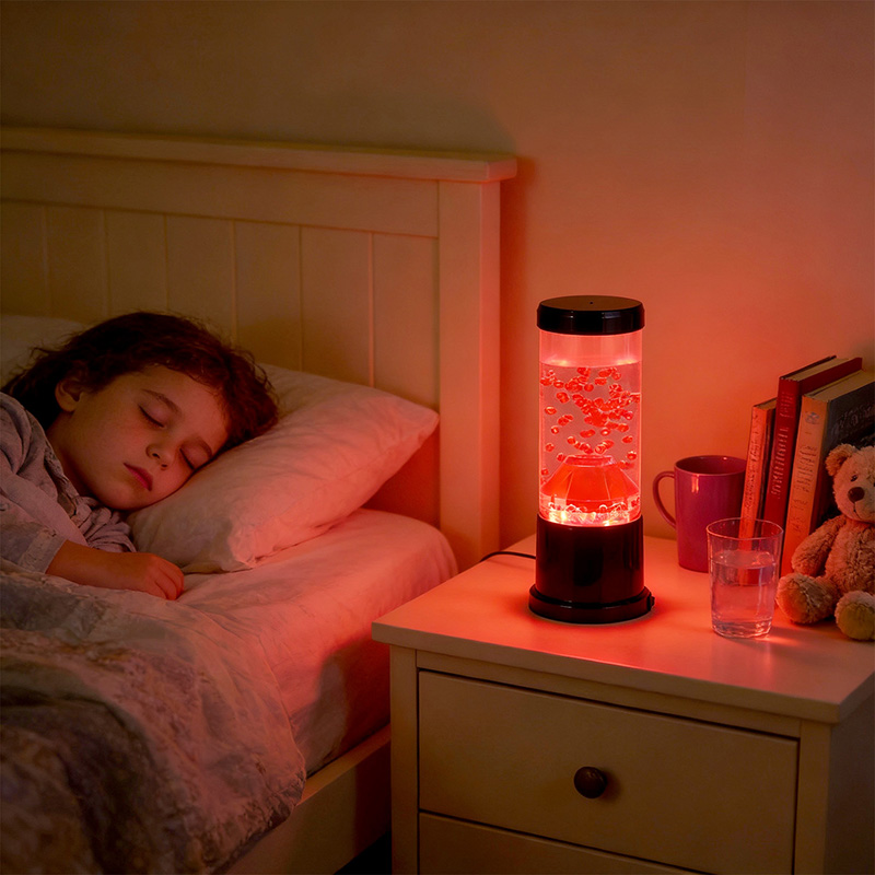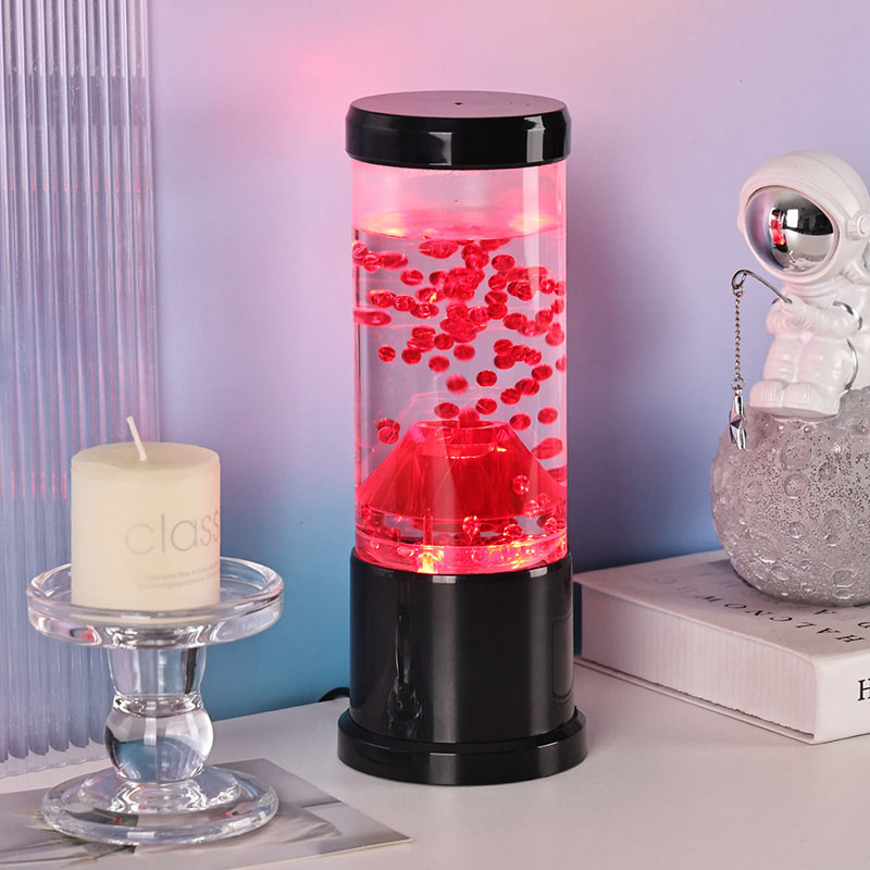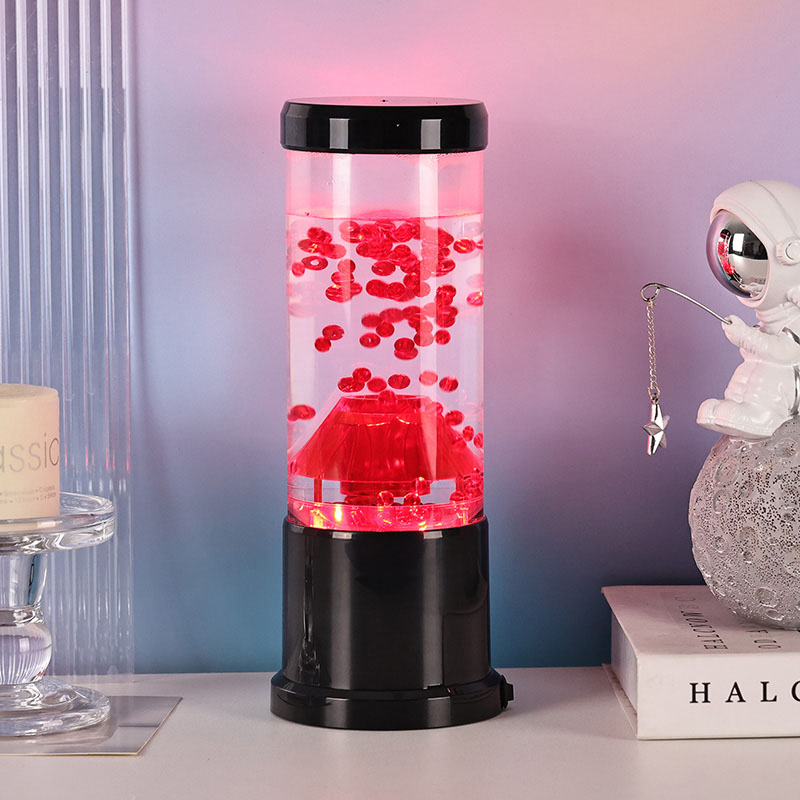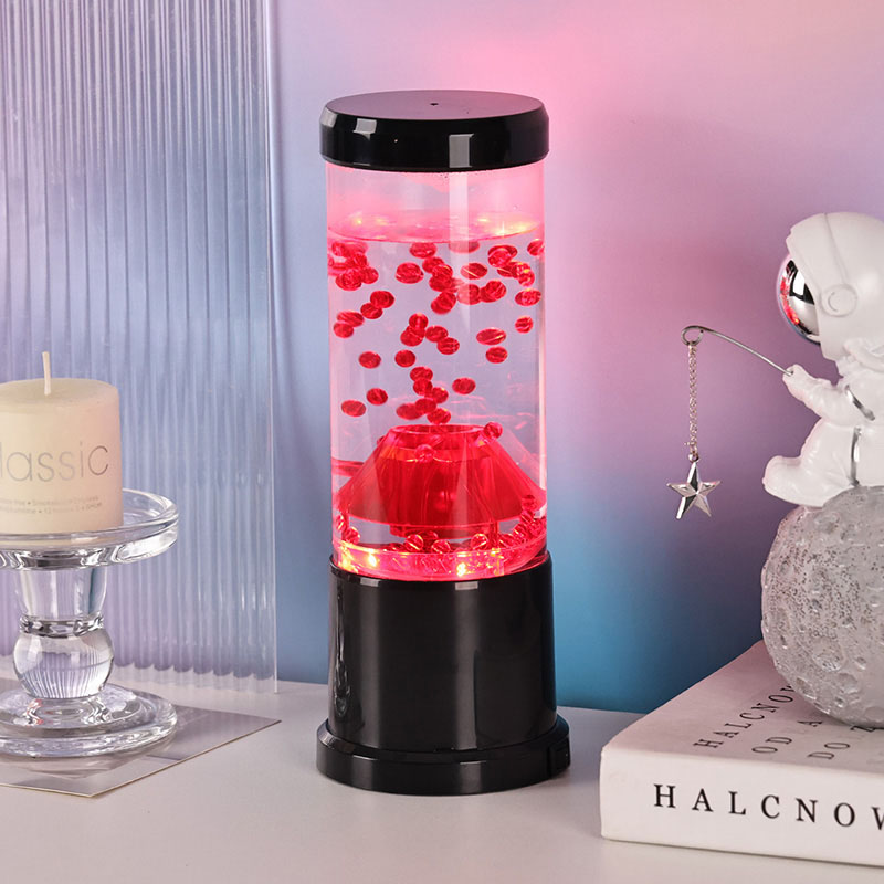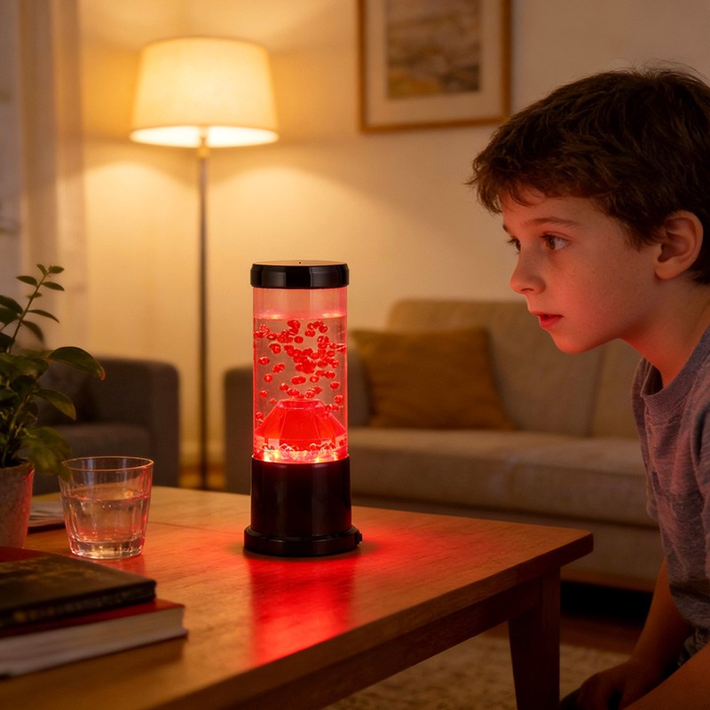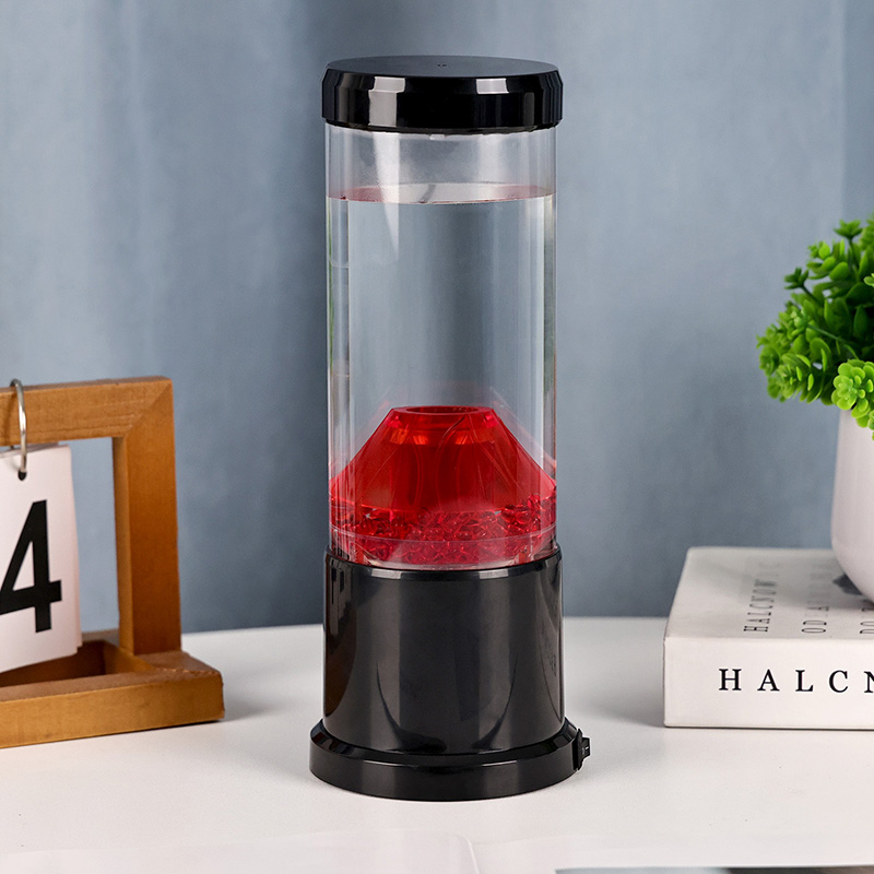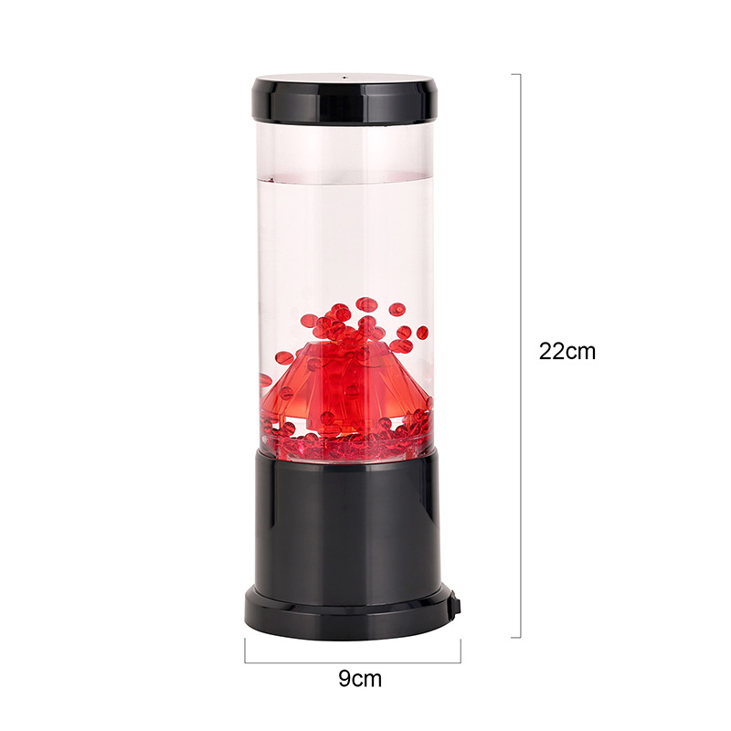Gecə işığının mərkəzi hissəsi vulkanik kraterə bənzəyən şəffaf bir sütundur. Bu sütunun içərisində siz yer qabığında axan ərimiş lavanı xatırladan qırmızı kürələrin canlı görüntüsünü tapa bilərsiniz. Bu kürələr dinamik və daim dəyişən vizual effekt yaradaraq şəffaf mayenin içində zərif şəkildə üzür. İşıq işıq saçdıqca, hər hansı bir otaqda rahat atmosfer yaratmaq üçün mükəmməl olan isti və cəlbedici parıltı verir.